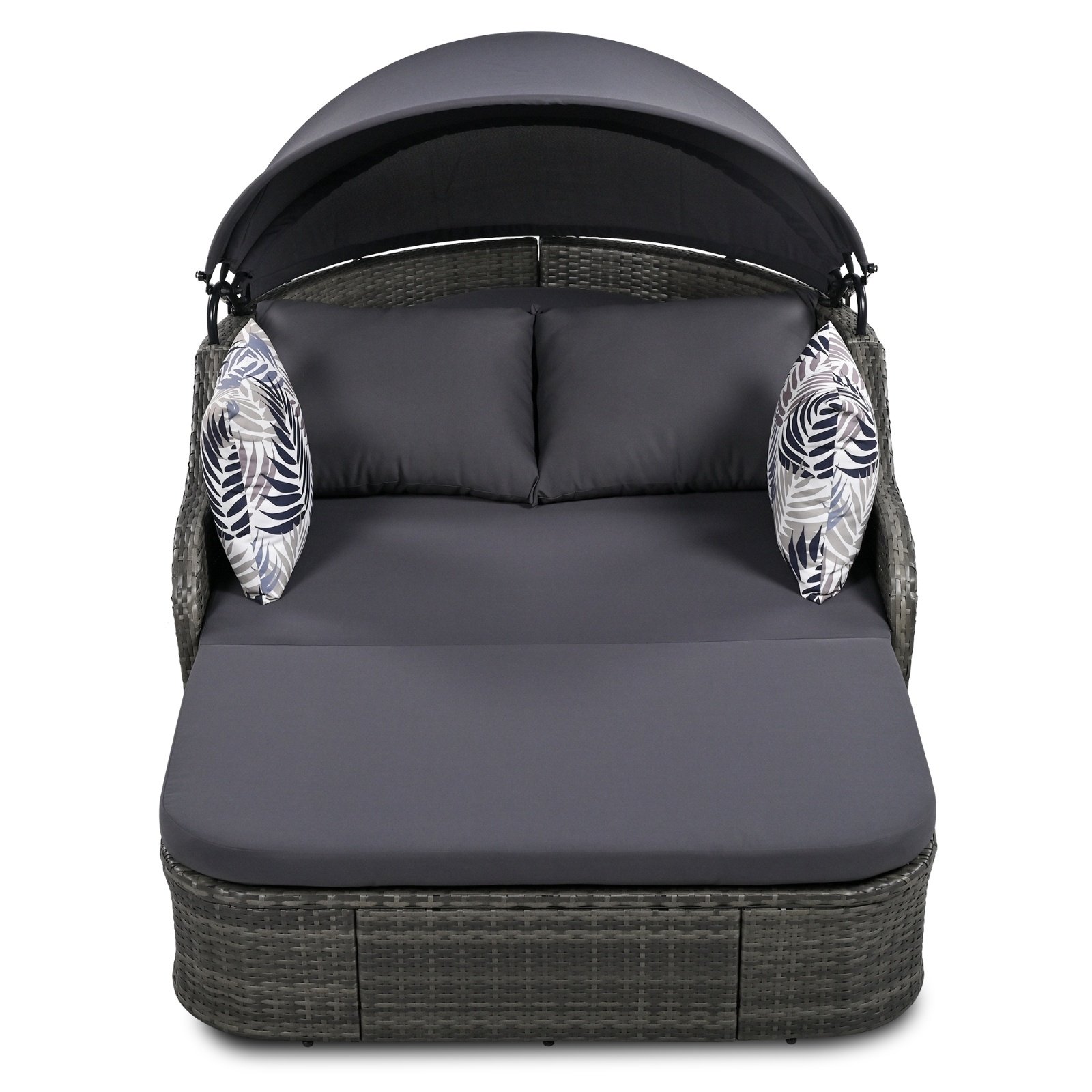 GO 79.9 Outdoor Sunbed with Adjustable Canopy, Double lounge, PE Rattan Daybed, Gray Wicker And Cushion