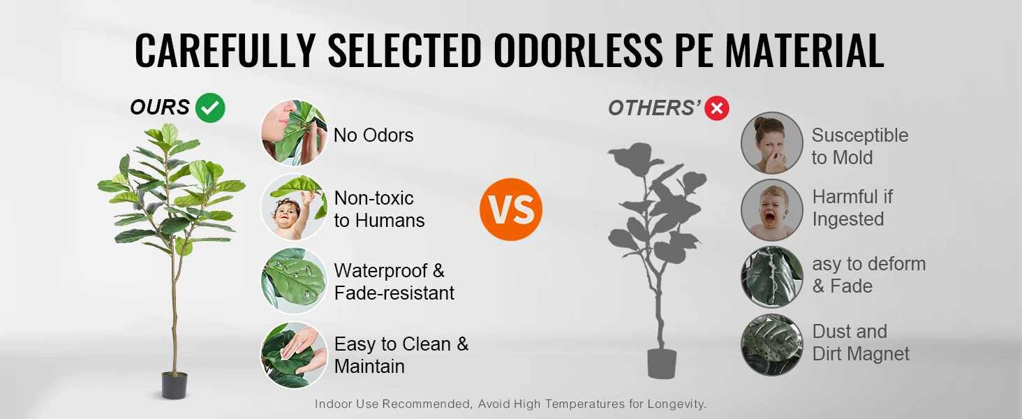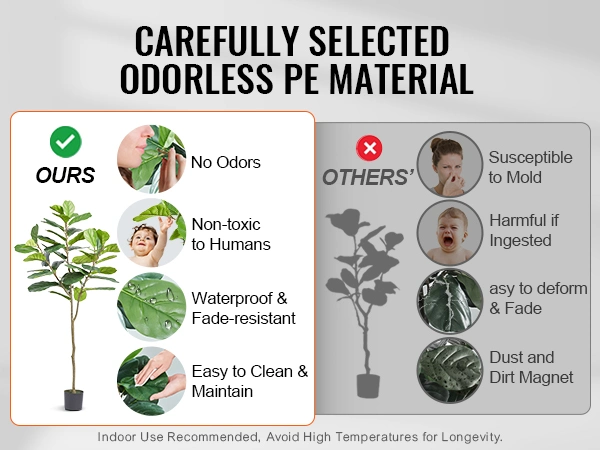 - Superior PE Material: Certified by California’s Proposition 65 material testing, our tall plant features an PE material that ensures easy cleaning and maintenance, and offers durability and waterproofing. Feel at ease placing them in your home, knowing they meet stringent standards.