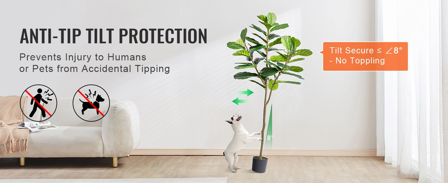 Even at an angle of ≤8°, our artificial trees remain stable, preventing tipping and ensuring the safety of both people and pets.