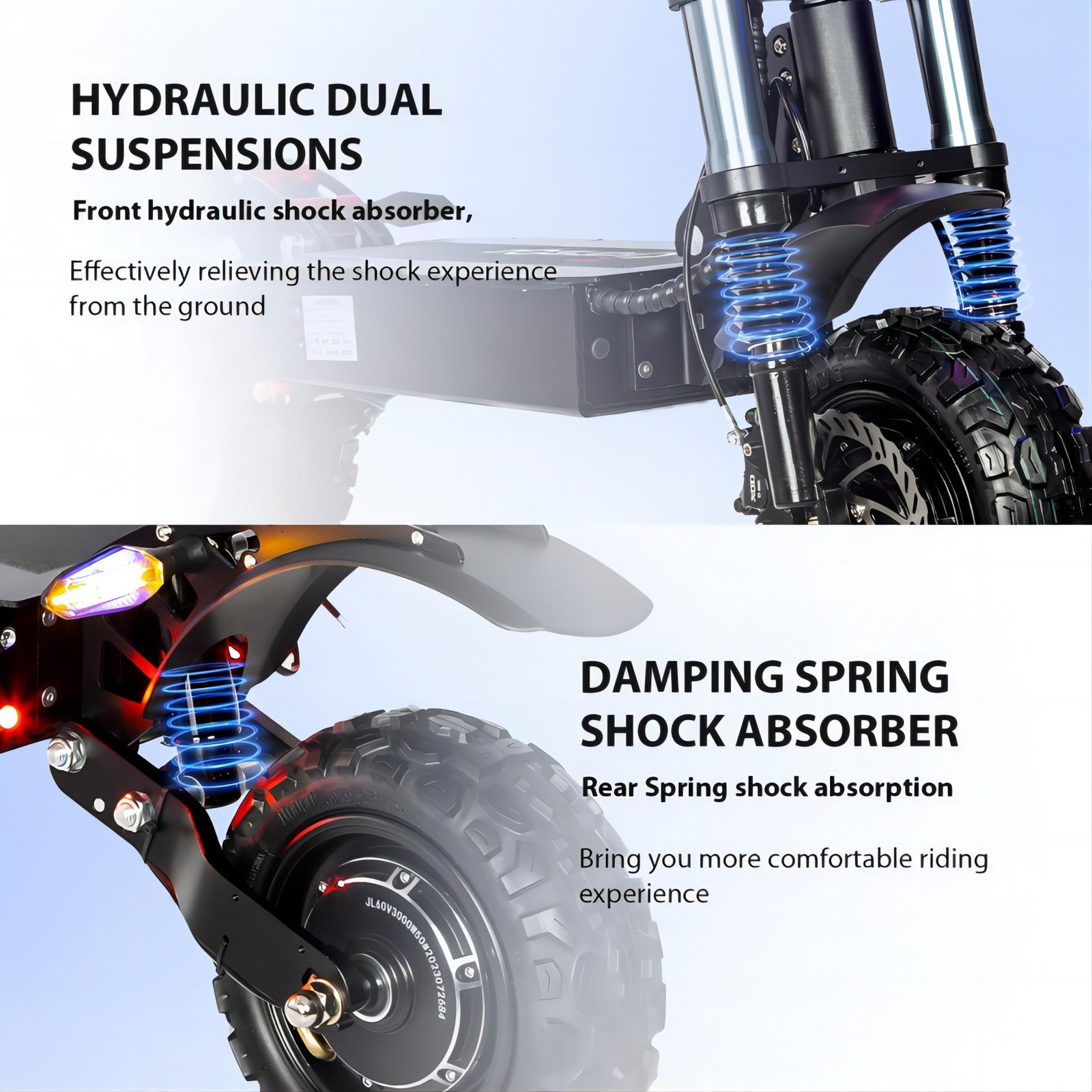 Electric Scooter for Adults 【 & 】It Is Equipped With 2 Powerful 3000w Brushless Hub Motors With A Total Power Of 6000w, Double Heat Dissipation Structure, Top Speed Of 50mph, And A Maximum Load Capacity Of Up To 340 Lbs. Easily Cross The Slope Of The Hill and enjoy The Thrill Of Speeding