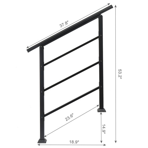 Elevate the safety and style of your outdoor steps with our robust Handrails for Outdoor Steps. This wrought iron handrail is a versatile solution designed to fit either one or three steps with ease, providing sturdy support for children, the elderly, and pregnant women. Its black powder-coated finish not only adds a sleek, minimalist touch to various exteriors but also ensures durability against the elements, resisting rain and rust. Perfect for residential homes, gardens, office buildings, hotels, or any establishment with stairs, this handrail is a blend of functionality, strength, and aesthetics.