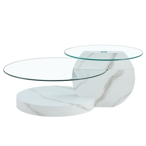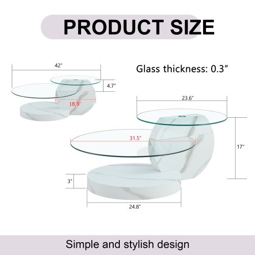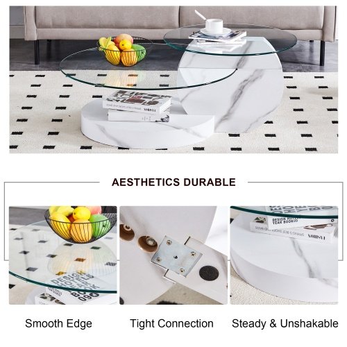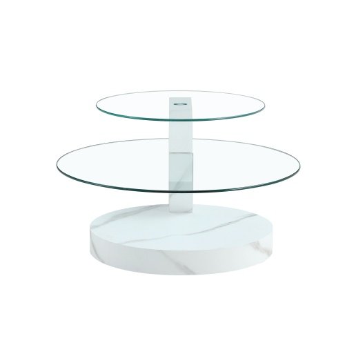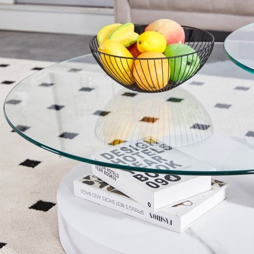 Modern And Practical Double-layer Round Table. Glass Table Top, Wood MDF Table Legs. Suitable For Living Room And Bedroom
