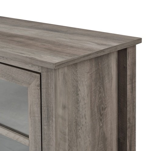 Modern Farmhouse-Door Glass Windowpane Fireplace TV Stand For TVs – Grey Wash