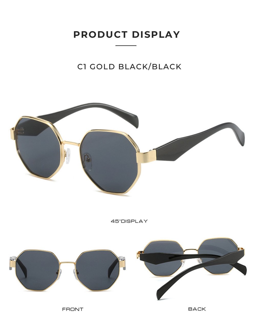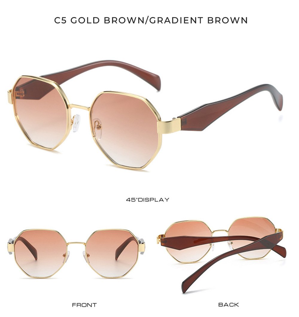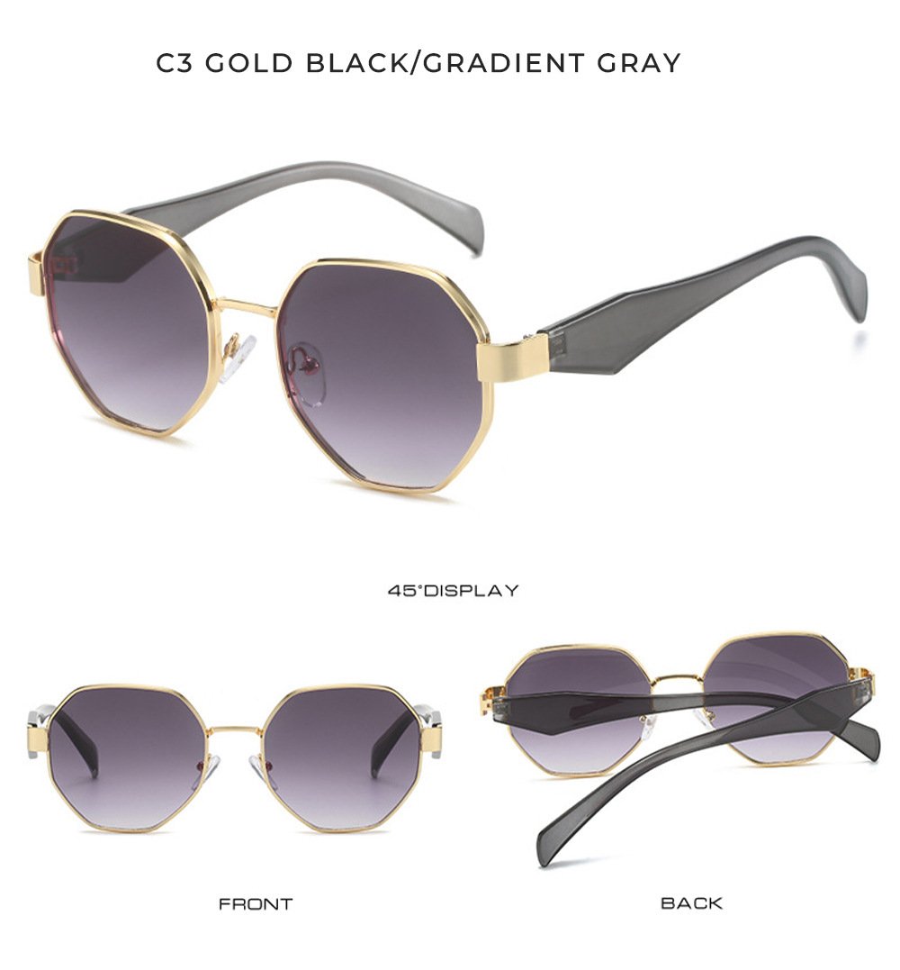 Color: C1: gold frame black leg black and gray lens sunglasses, C2: gold frame beige leg black and gray lens sunglasses, C3: gold frame black leg gradient gray sunglasses, C4: gold Frame blue leg gray dry sunglasses, C5: gold frame tea leg gradient tea sunglasses, C6 gold frame white leg black and gray lens sunglasses