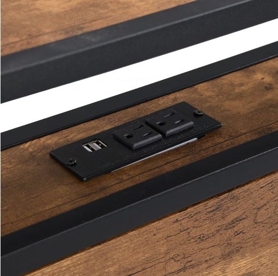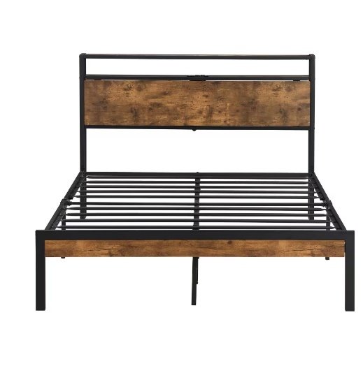 Queen Size Metal Platform Bed Frame With Wooden Headboard And Footboard With USB LINER