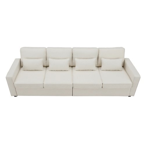 Product Name:[VIDEO provided] [New] 104″ 4-Seater Modern Linen Fabric Sofa with Armrest Pockets and 4 Pillows,Minimalist Style Couch for Living Room, Apartment, Office,3 Colors