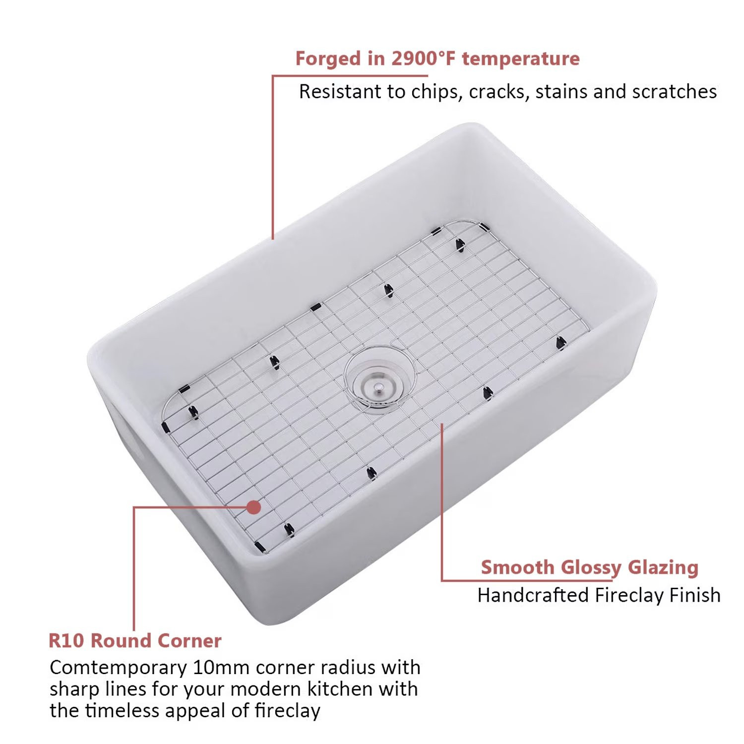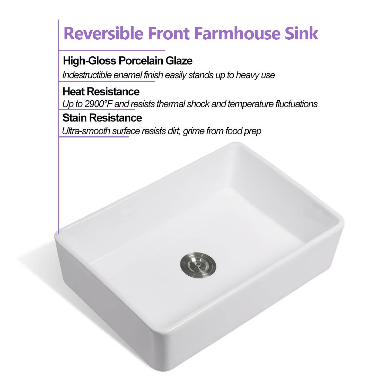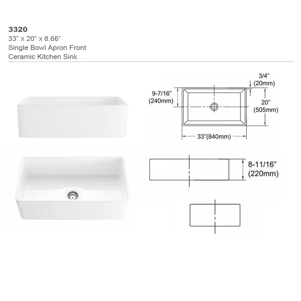 Product Name: 33″ L X 20″ W Single Basin Ceramic Farmhouse Kitchen Sink with Basket Strainer