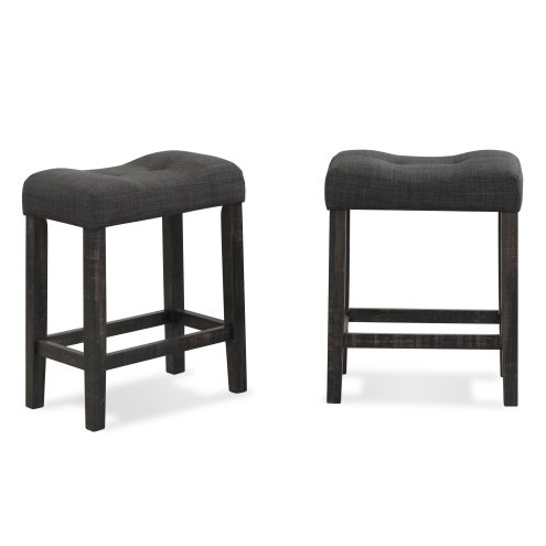 Product Name:Sora Button Tufted Counter Height Saddle Stool, Set of 2, Gray