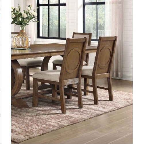 Description:- Delight family and guests alike in this rich rustic oak ensemble. Seat cushions are padded in a warm beige linen fabric that helps achieve an artful balance of beauty and function. Product Dimensions:- Dining Side Chairs – 19″W X 23″D X 38″H (SEAT HT: 18 1/2″, SEAT DP: 17 1/4″) Listing Includes :- Set of 2pc Side Chairs Only. DINING TABLE – NOT INCLUDED. Simple assembly require. Product Features:- Transitional Rustic Oak/Beige Fabric, Solid Wood, Wood Veneer, Others 100% Polyester
