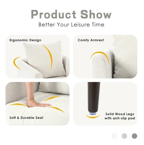 【Sturdy and durable】This living room chair is supported by beautiful tapered wooden legs, which has an elegant appearance and a durable structure. Thanks to its wood-frame construction, this upholstery chair can withstand 275 pounds (static load capacity), which is equivalent to the weight of two adults, ensuring the sturdiness of our comfortable chairs. The fabric is not easy to pill, and the cushion is not easy to deform after long-term use.