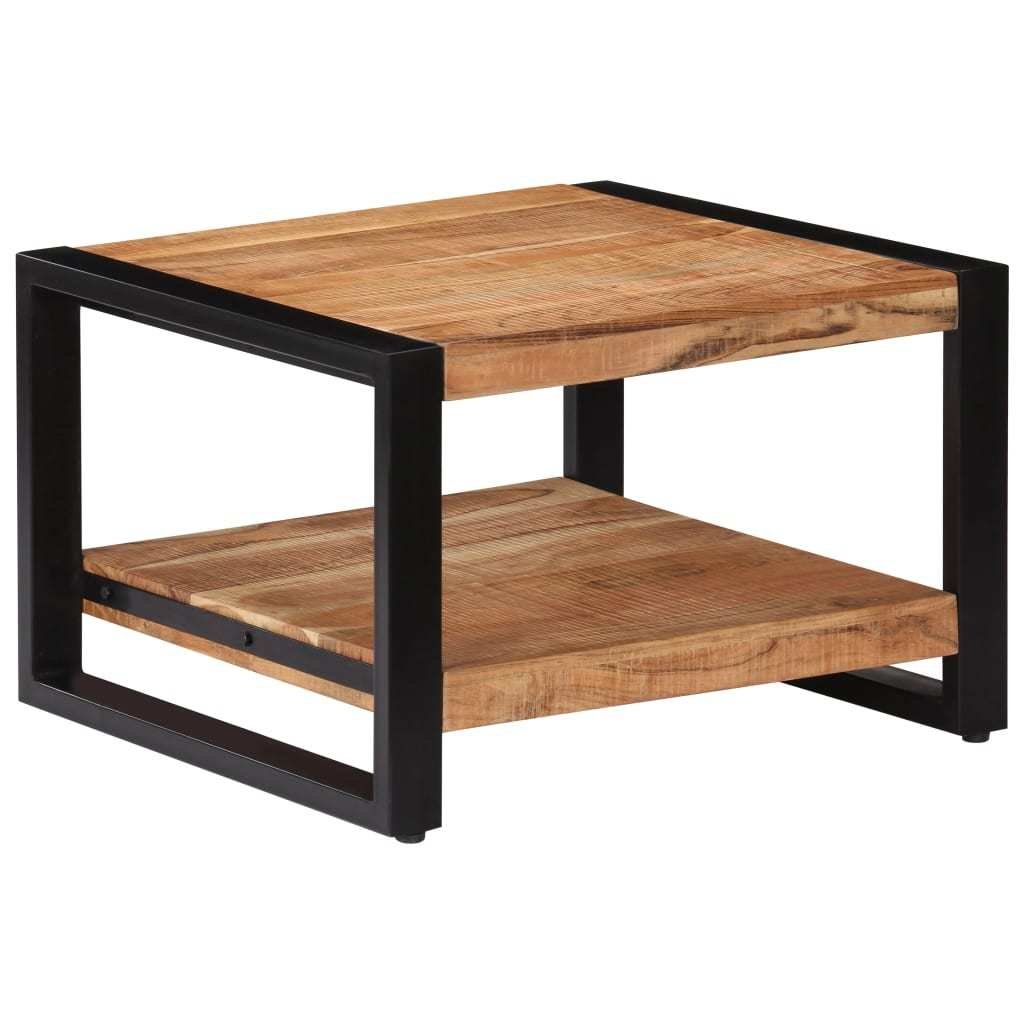 Features:This retro wooden coffee table exudes a rustic charm. It will definitely make a timeless addition to your interior. The antique-style couch table is made of solid acacia wood that has been given a finish by polishing and lacquering, to give it a refined look. The craftsmanship and the classy wood grains make every piece of furniture distinctive and slightly different from the next. This industrial-style living room table is fully handmade and every step of the process, be it polishing or lacquering, has been carried out with the greatest care. This side table features 1 compartment, providing commodious space for storing your multimedia appliances, books, as well as various other items. Important note: The grains vary from piece to piece, making each piece unique. The delivery is random, ensuring the exclusivity and individuality of your product. Material: Solid acacia wood and powder-coated iron frameDimensions: 60 x 60 x 40 cm (L x W x H)Finish: Polished and lacqueredWith 1 compartmentSpecifications:Material: Solid acacia wood and powder-coated iron frameDimensions: 60 x 60 x 40 cm (L x W x H)Finish: Polished and lacqueredWith 1 compartment