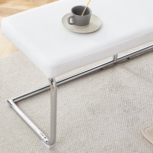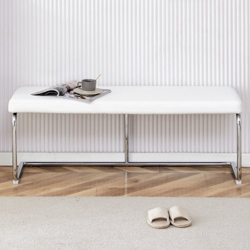 Product Name:White shoe changing stool, silver metal legs, sofa stool dining chair, suitable for bedroom ,fitting room, storage room, dining room, living room. 005
