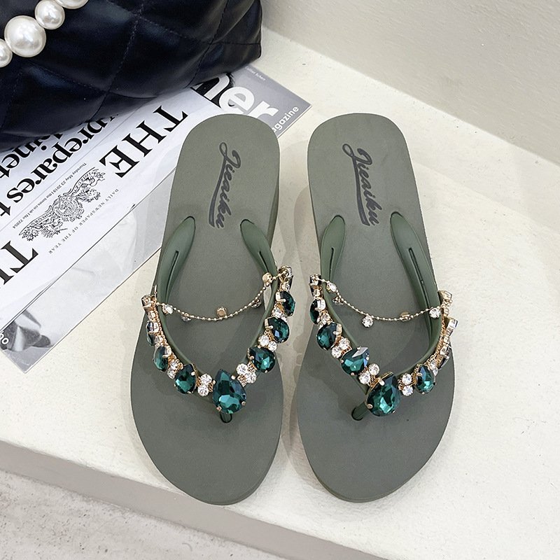 Women’s Fashion Casual Rhinestone Chain Thick Bottom Flip-flops